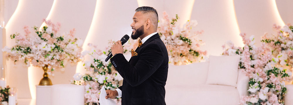 Doc Lance is a Professional Master of Ceremonies (MC) recognized for his articulate delivery, engaging presence, and charismatic style. With over 15 years of experience in the wedding, corporate, & music industries, he brings energy, professionalism, and precision to every event while ensuring a smooth and unforgettable experience.* *Travel Expense: Pricing Subject to an additional travel expense of $0.49/KM from Home Office (Kitchener, Ont) to Venue (Both Ways) will be added to the final invoice. BROWSE OTHER SERVICES FROM DROP DOWN MENU